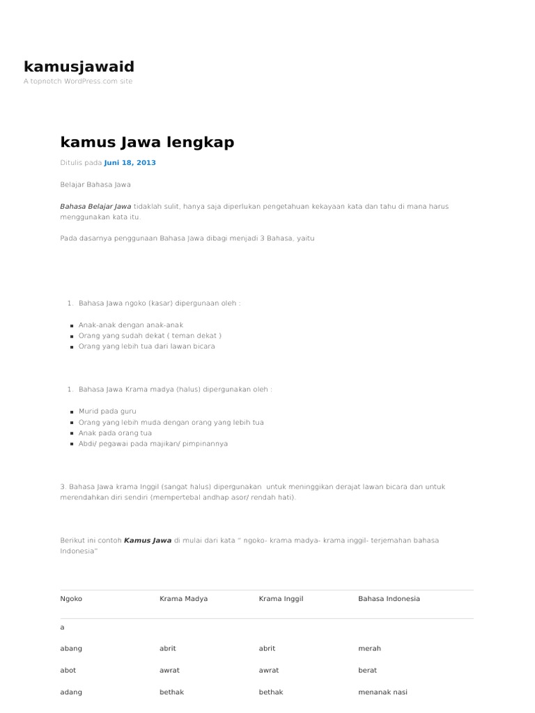 Download Kamus Bahasa Jawa Kromo Inggil Pdf - Download Gratis Kamus Bahasa Jawa Ngoko Krama Madya Krama Inggil Sembarang Share - Using apkpure app to upgrade bahasa krama inggil, fast, free and save your internet data.. Namun, hari ini penggunaan bahasa kara inggil sudah sangat mengkhawatirkan. Kamus penerjemah semua bahasa apk. Using apkpure app to upgrade bahasa krama inggil, fast, free and save your internet data. Sesuai dengan makna harfiahnya, kawi berarti pujangga. Akibatnya, bahasa jawa krama inggil kurang populer dan jarang di dengar lagi.