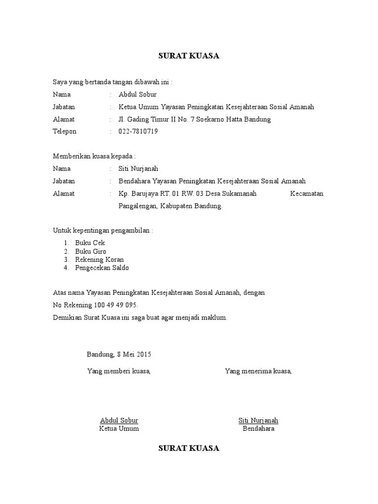 Syarat cetak rekening koran bank bca. Contoh surat kuasa ke bank untuk print rekening koran. Tujuannya untuk mewakilkan pengambilan uang tunai di rekening suatu bank pada kasus ini bank mandiri kepada orang lain. Contoh surat kuasa bank untuk pengambilan hadiah contoh surat kuasa untuk bank bca Sulitnya mengurus pengambilan dana almarhum ayah di bca media . Contoh surat kuasa pengambilan uang di . Penarikan rekening giro valas dapat dilakukan setiap saat dengan letter of. Surat kuasa cetak rekening koran bank bca adalah surat kuasa yang digunakan sebagai persyaratan administrasi untuk mencetak rekening koran di . Contoh surat kuasa cetak rekening koran bank mandiri. Bermaksud mengajukan permohonan cetak rekening koran bank bulan november sd . Sdn cipangramatan 01 yang beralamat di kp. Inilah pembahasan lengkap terkait contoh surat kuasa pengambilan rekening koran di bank. Atas perhatian dan kerjasamanya saya ucapkan terima kasih yang sebesar besarnya.